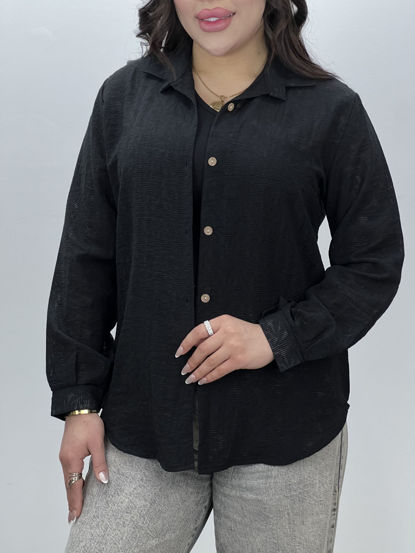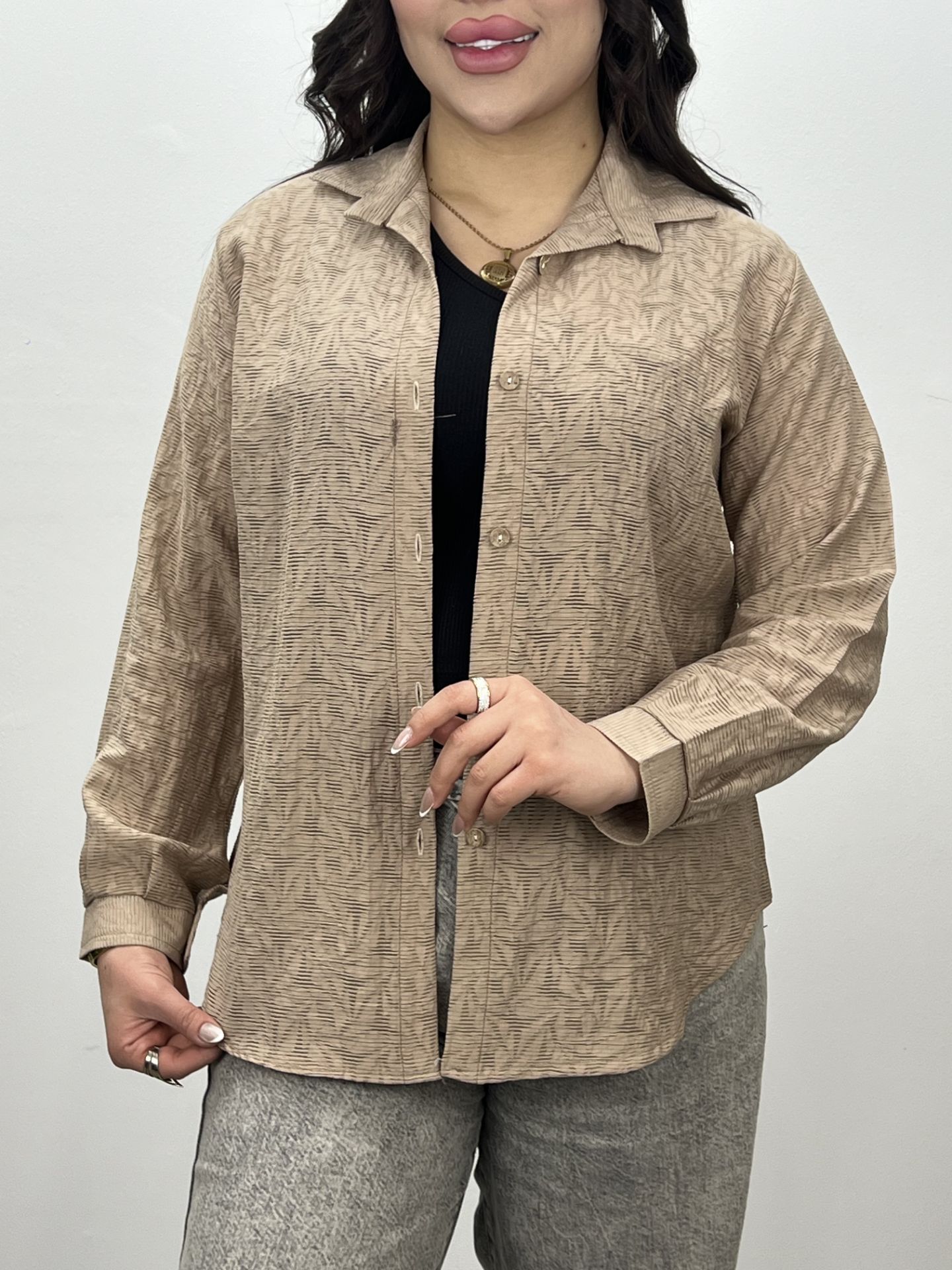 شومیز مانتوی نیوا فری سایز مناسب 36تا46 ژاکارد طرحدار با کیفیت عالی قد کار 72 دور سینه 110 قد آستین 53
